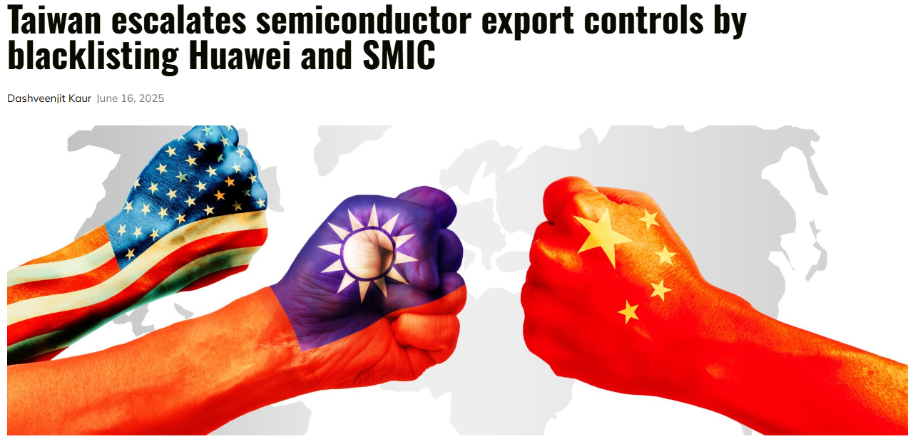 Taiwan’s blacklisting of Huawei, SMIC, and nearly 600 other entities escalates the global microchip and AI competition narrative, locking the island into U.S.-led export control regimes that recast semiconductors as strategic weapons in a tech cold war. By grouping China’s top chipmakers with sanctioned actors from Russia and Iran, the move amplifies the frame that access to advanced chips defines geopolitical power, while Taiwan—home to TSMC—emerges as a core amplifier of the techno-democratic containment architecture. This shift from trade pragmatism to security signaling hardens supply chains along ideological lines, reinforcing GCA narratives that paint China’s AI ambitions as destabilizing and illegitimate.