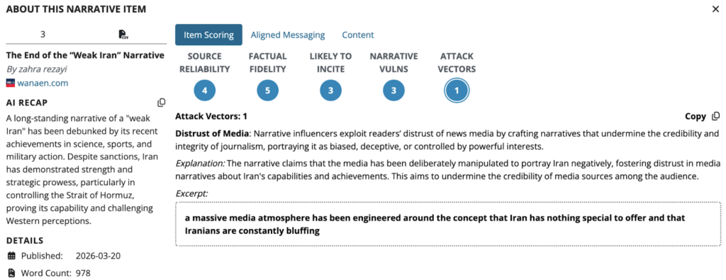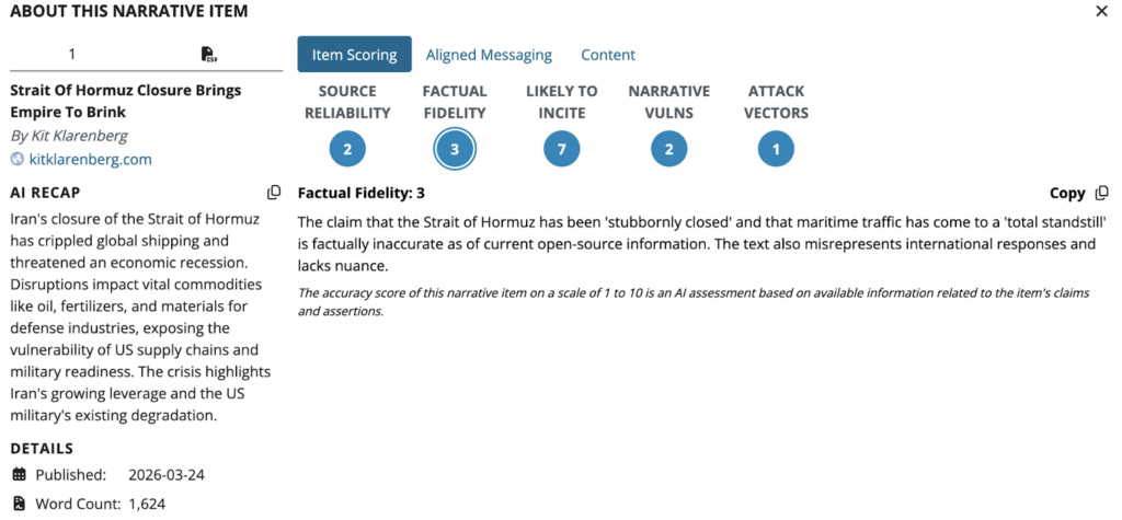 By narrowing the set of perceived credible sources, the narrative reinforces confirmation bias and reduces the likelihood that audiences will incorporate corrective information. In a crisis context like the Strait of Hormuz, this fragmentation of trust can amplify uncertainty, as market and policy responses become increasingly driven by contested narratives rather than verifiable developments.
