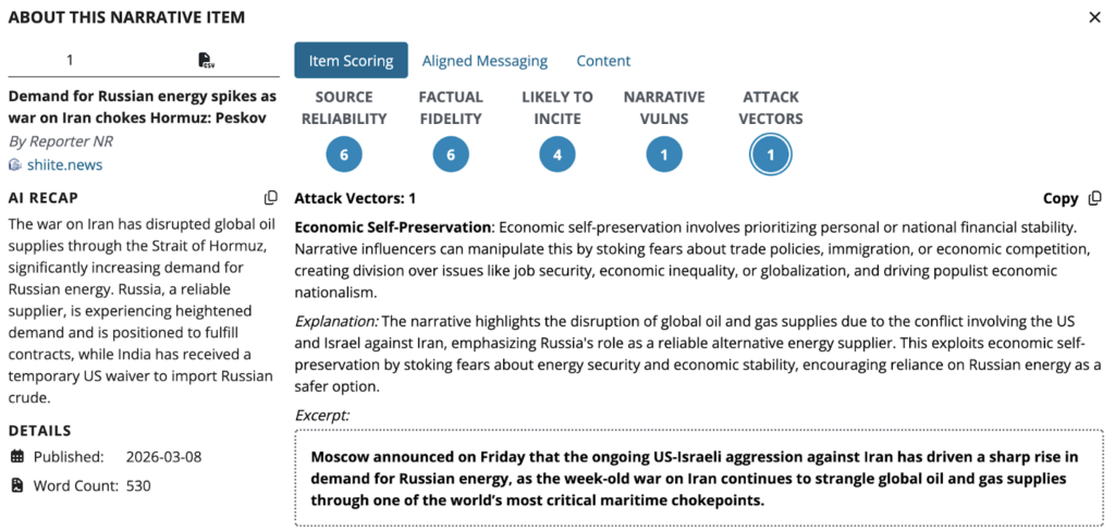 This narrative reinforces how energy disruptions are not only reshaping supply chains but also being leveraged to advance alternative geopolitical alignments. By emphasizing Russia as a “reliable supplier” amid Strait of Hormuz disruptions, the narrative promotes economic self-preservation logic that encourages states to shift toward non-Gulf, non-Western energy sources. This aligns with the structural shift where countries pursue diversification through overland routes, stockpiles, and alternative suppliers. The narrative functions as a soft influence mechanism that normalizes dependence on actors like Russia and, by extension, China-linked energy networks, which similarly offer diversification outside traditional chokepoints. This is particularly relevant for states like Singapore and ASEAN members, where such narratives could shape policy preferences toward China-connected supply chains under the guise of resilience, even when those shifts may carry longer-term strategic tradeoffs.