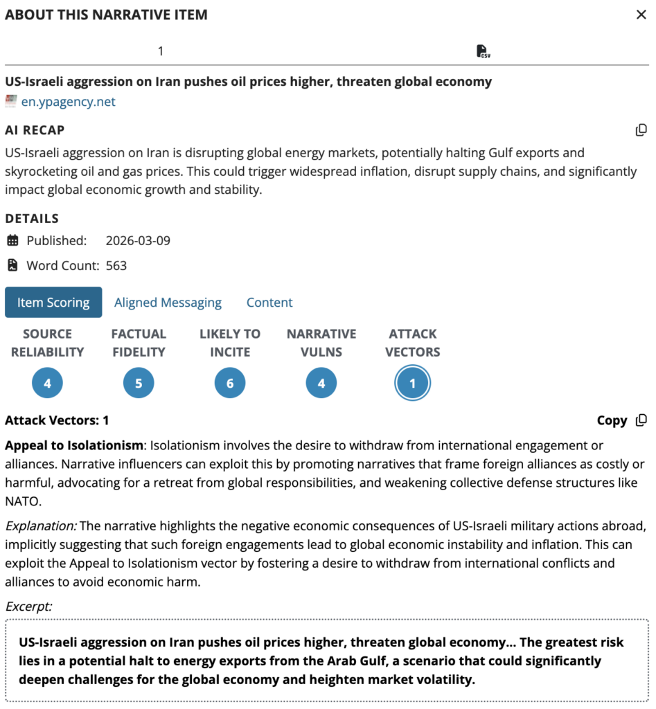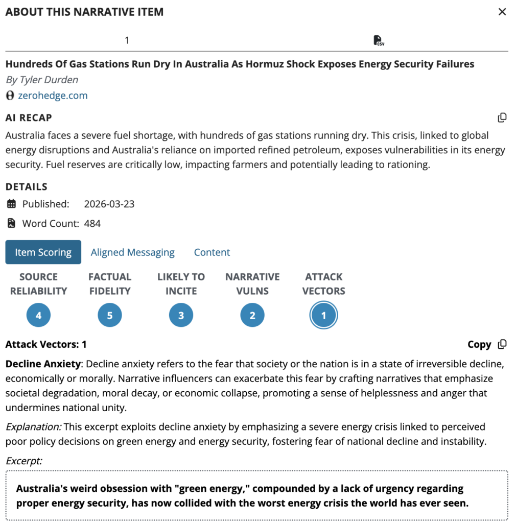 Amplified content leverages themes of inflation, shortages, and cost-of-living pressures to heighten uncertainty and distrust. These narratives often extend beyond energy markets to suggest cascading economic and societal consequences, including financial system instability. By framing the crisis through fear-based and worst-case scenarios, coordinated messaging increases polarization and primes audiences to accept geopolitical interpretations that align with specific strategic interests.