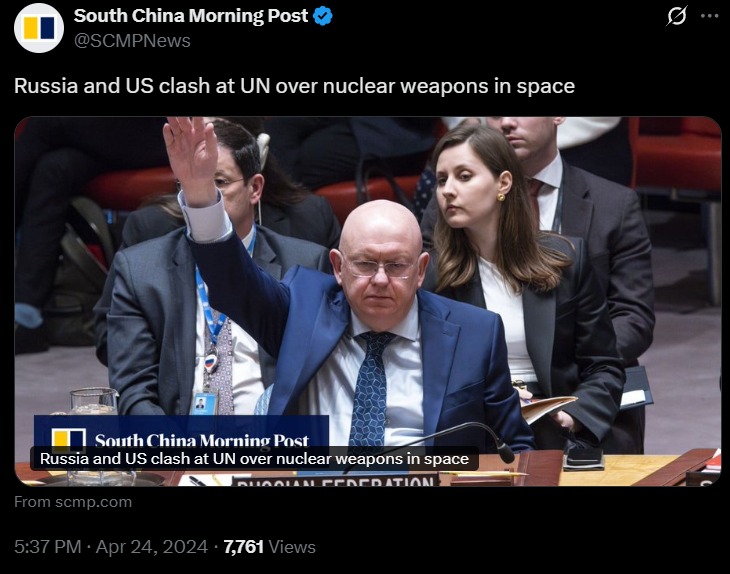 Image of Twitter Post from SCMP on US & Russia clash on Nuclear Doctrine