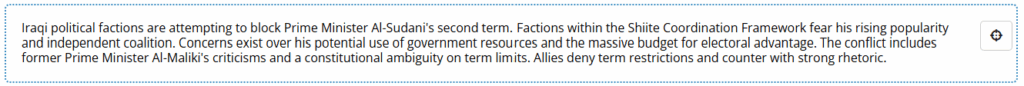 Edge Theory’s monitoring noted the Coordinating Framework’s opposition to Al-Sudani securing a second term, including Al-Maliki’s reservations.