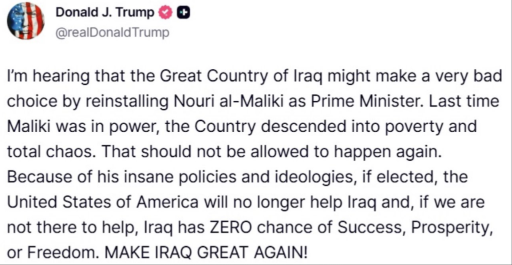 The war in Iran will further stagnate Iraqi government formation. Government formation has stalled for two reasons. First, Iraq’s Kurdish parties failed to agree on a nominee for the presidency (a position traditionally held by a Kurd). The constitutional deadline for parliament to elect a president passed on January 28 (3). Second, parliamentary disagreement regarding the Coordinating Framework’s (CF’s) nomination of former Prime Minister Nouri Al-Maliki. Al-Maliki’s nomination generated backlash both within the CF and from Sunni parties. The CF is a coalition of Shi’a parties, some of which are backed by Iran. The US’s clear disapproval of Al-Maliki appears to have finally moved the needle. On 27 January, President Trump stated on Truth Social that the US would “no longer help” Iraq if Al-Maliki became the next premier: