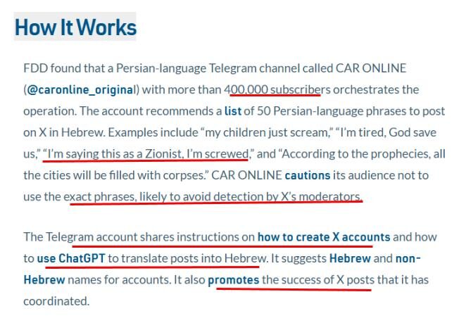 CAR ONLINE (@caronline_original) runs a Telegram-based influence hub pushing Persian-speaking users to mimic Israeli despair—in Hebrew—on X. With over 400K subscribers, this account spreads emotional slogans like “I’m tired, God save us” and offers operational guides on setting up accounts, using ChatGPT for translation, and avoiding detection.