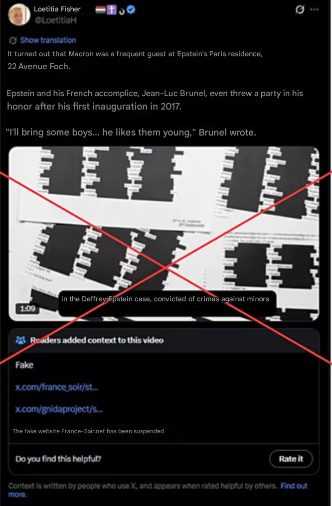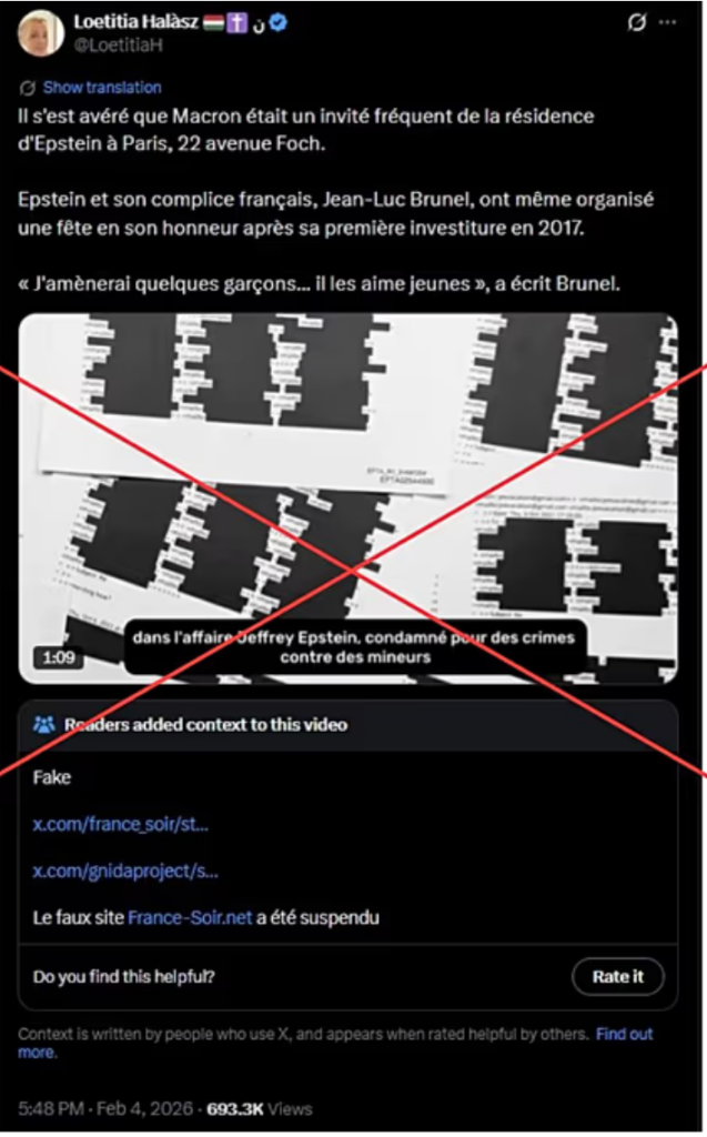 X account linked to Matryoshka bot network post claims Macron was a frequent guest at Epstein’s Paris residence